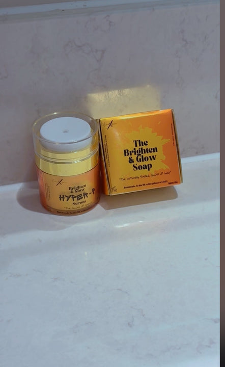The HyperP Glow Kit pairs our Brighten & Glow Soap with the HyperP Serum to deliver a powerful, targeted routine. Together, they work to fade stubborn marks, smooth texture, and reveal your skin’s natural, radiant glow.